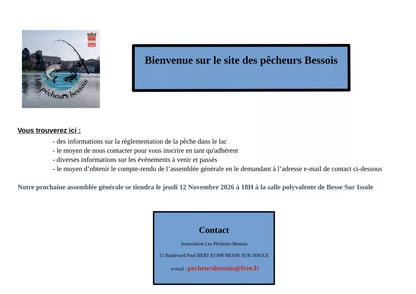 Accueil Réglement de la pêche Arrêté municipal Cartes Poissons Prochains évènements Evènements passés